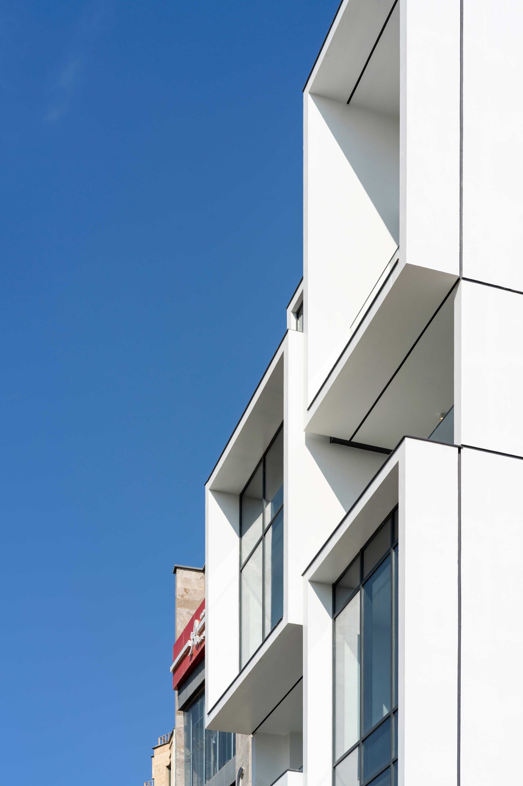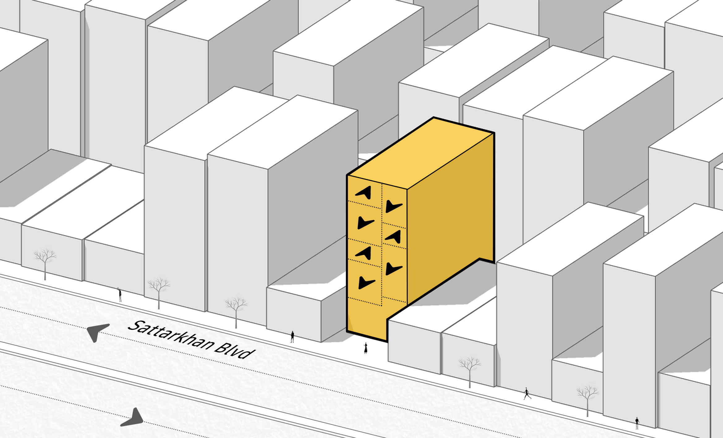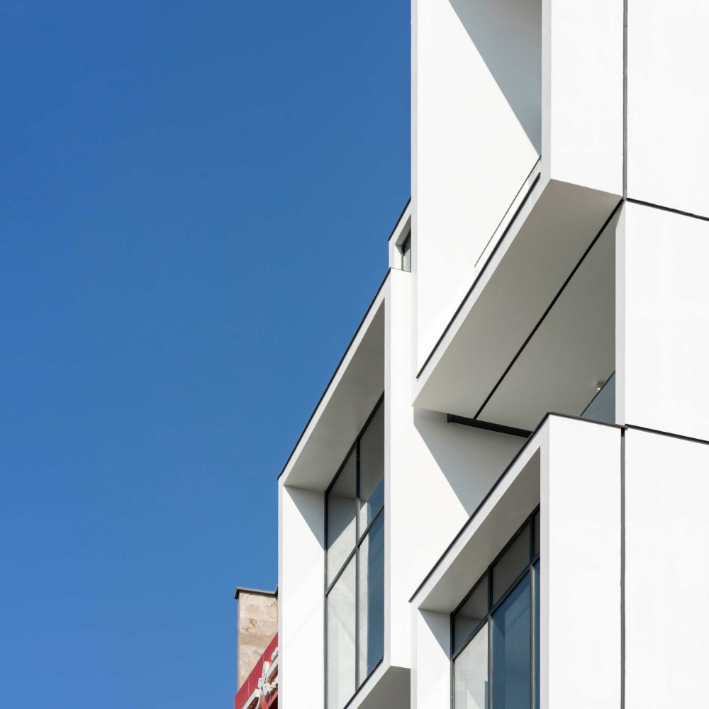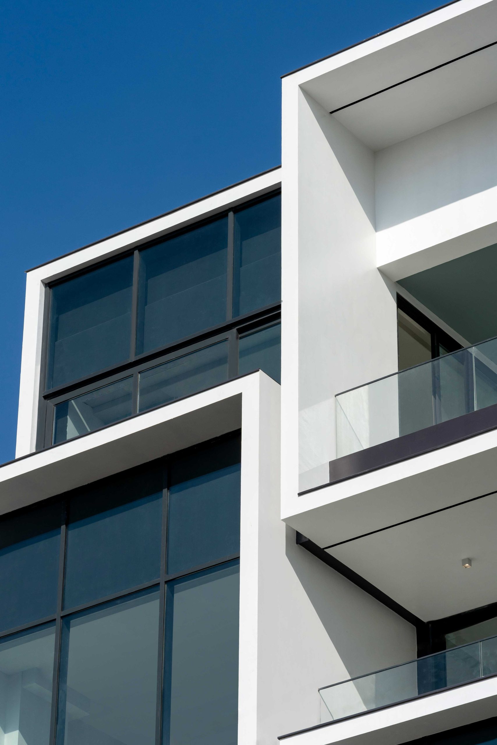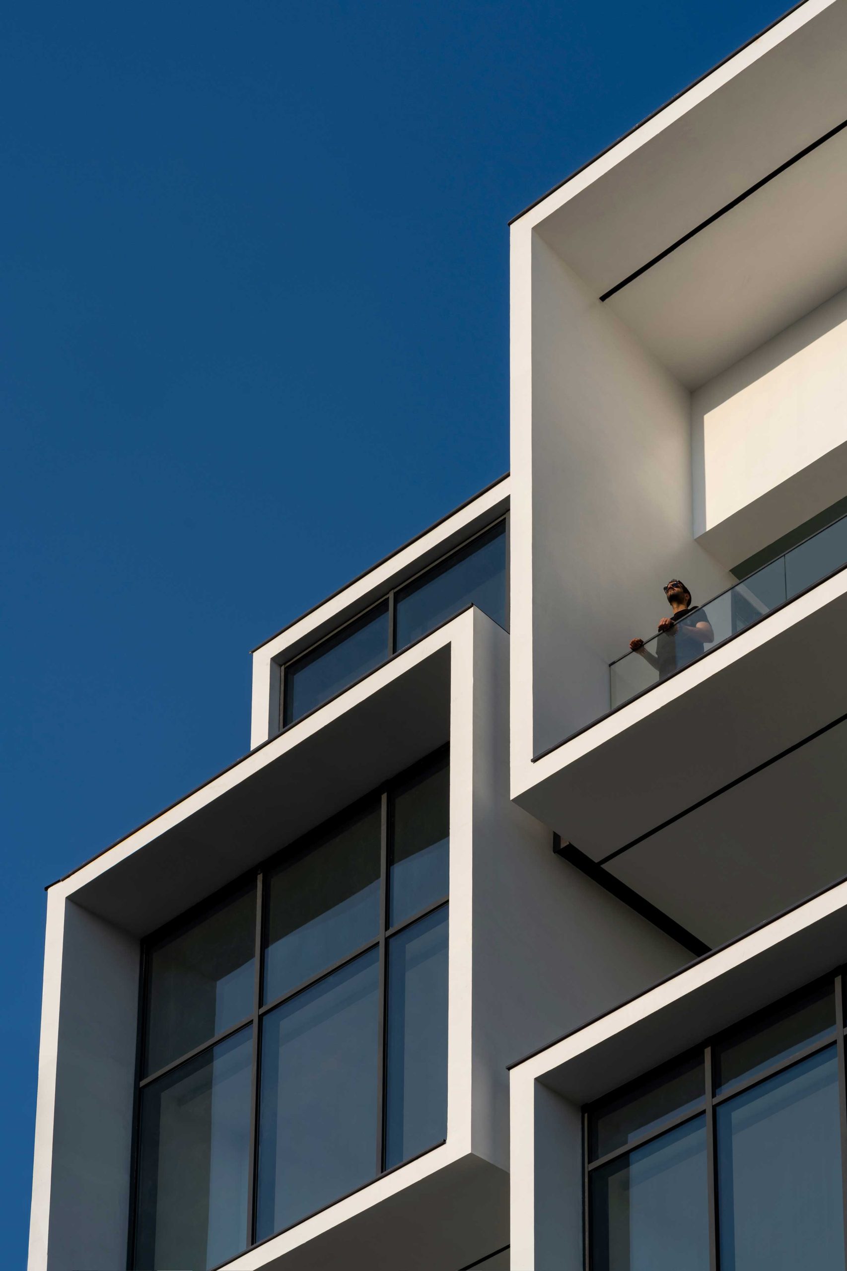 These sectional divisions were framed within continuous white boxes, and by dissolving the rigid horizontal separations between floors inside these frames, the design aimed to generate spatial variability and diverse openings toward the street and the garden beyond. On the uppermost level, the absence of a completed structural frame provided the opportunity for further setbacks and larger semi-open terraces, offering open and transitional spaces for light, air, and interaction.