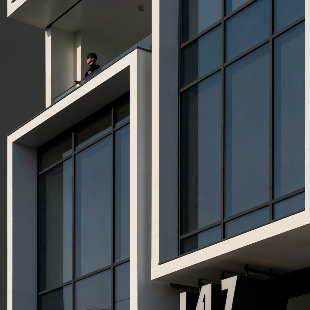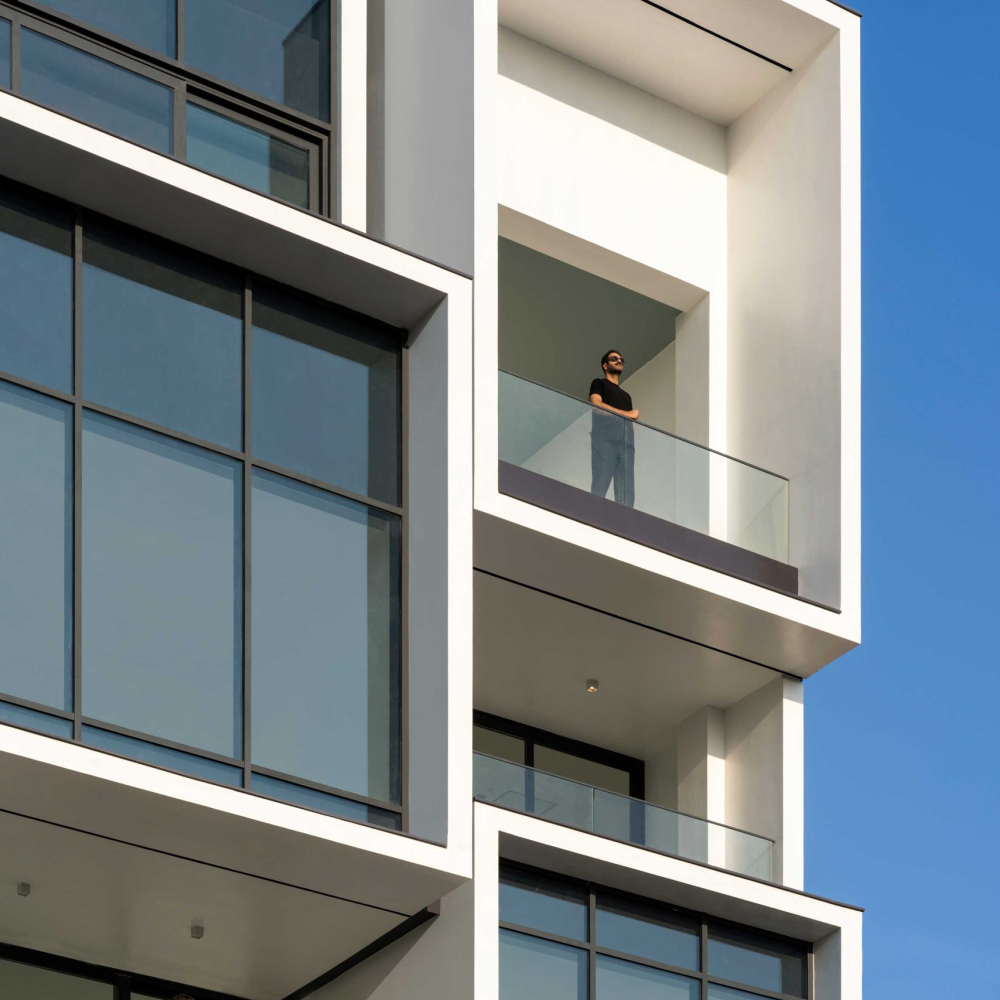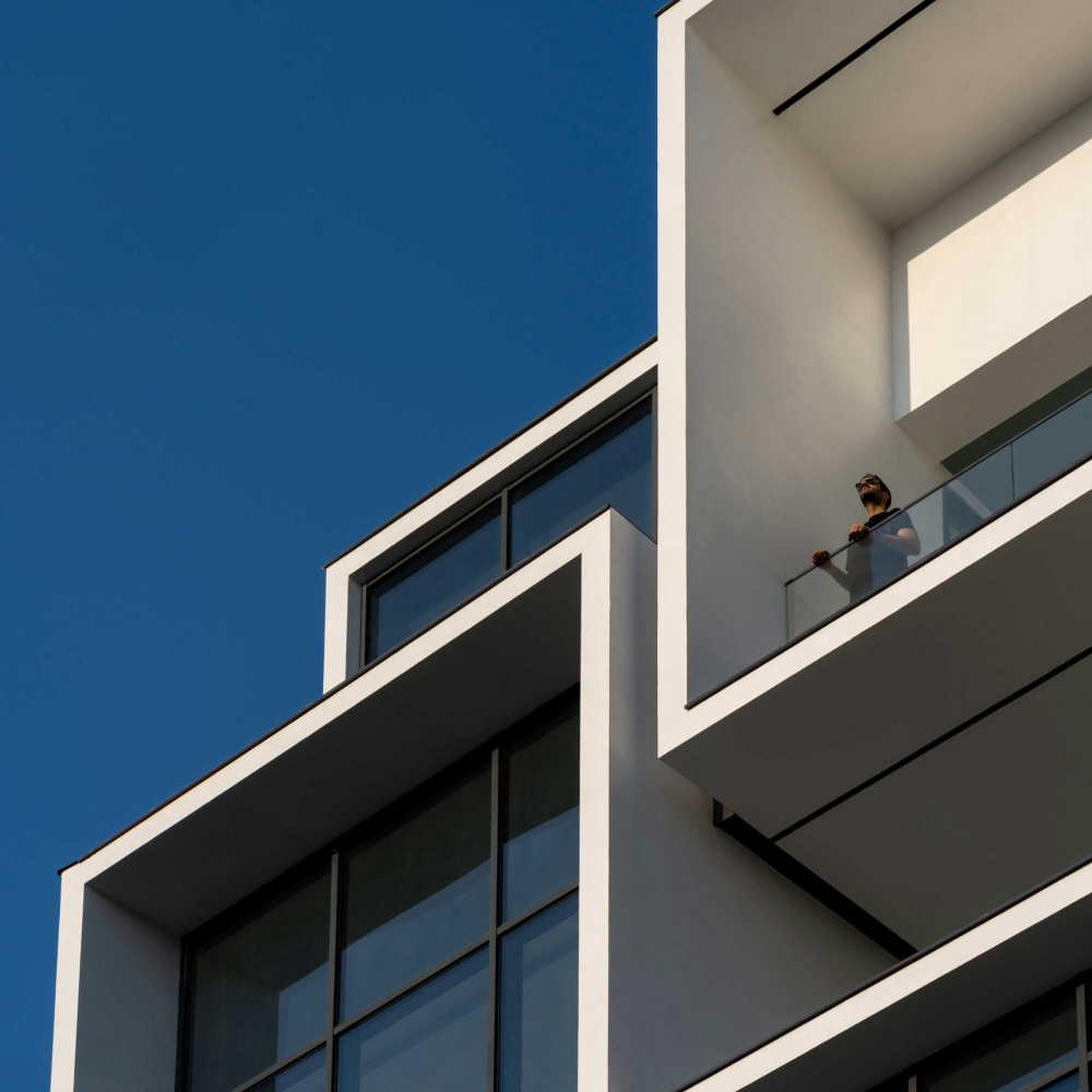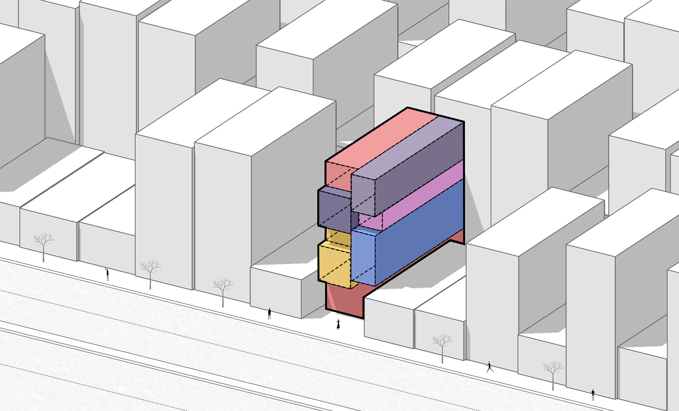 Given the elongated proportions of the site and the pre-constructed skeletal frame, the design challenge centered on deepening the building’s façade and creating a meaningful spatial dialogue with the city and the gardens across the street. To address this, the building’s volume was divided longitudinally into two main segments, allowing for deep terraces to alternate between the eastern and western façades. This strategy not only enhanced the façade’s spatial depth but also introduced a layered and dynamic quality to the massing.