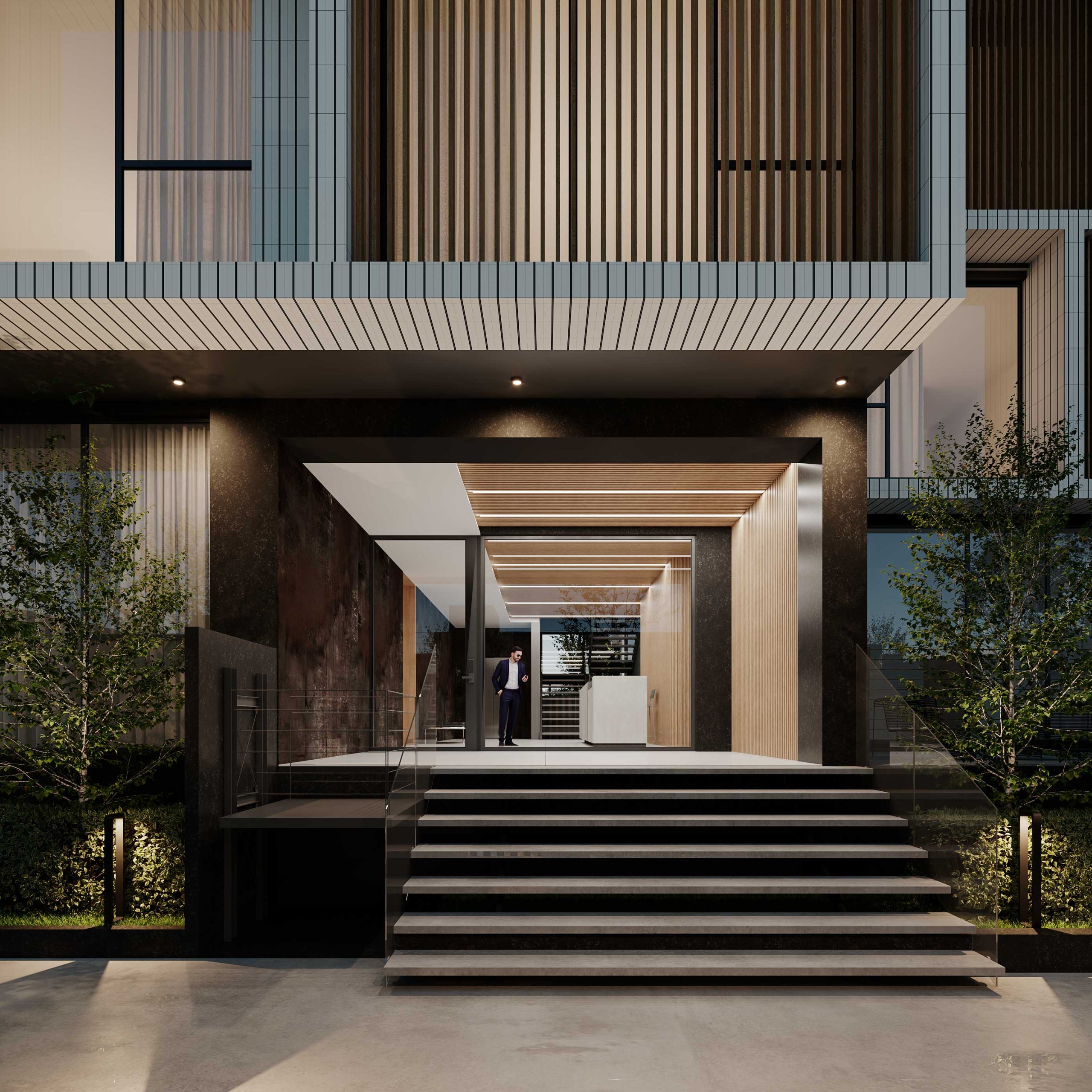 Considering the contradiction between the need to control radiation and the desire to expand the view of the surrounding landscape, the project retreats inward at its edges through deep balconies, while on the other hand, it attempts to respond to this duality by incorporating a grid that extends the internal divisions of the project outward.